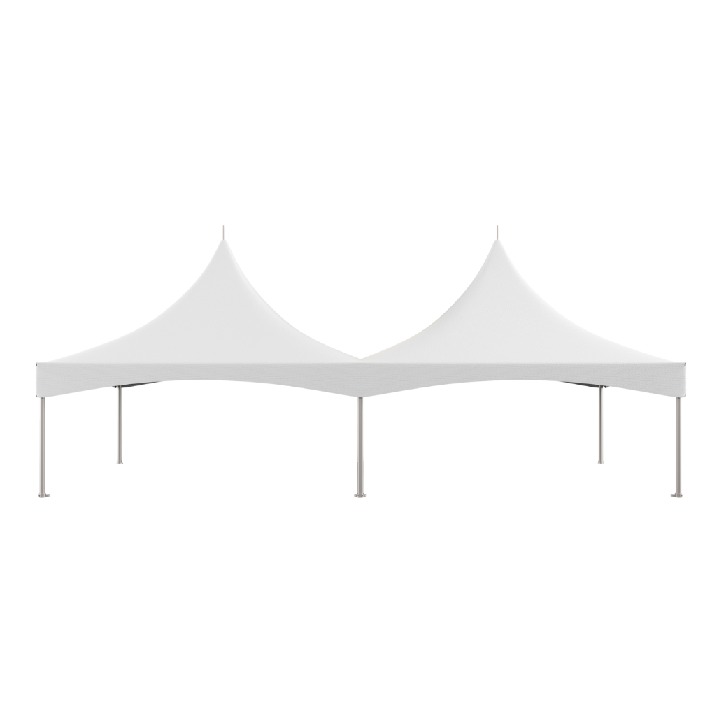 This 15’x30′ High Peak Frame Tent is set up using tension cross cables to support the center pole, no center pole on floor. This design provides a high peak elegant look and clear open floor. It also has fewer fittings and parts than traditional frame tents and pole tents, making it easier to setup and take down. A 15’x30′ High Peak Frame Tent can be set up in 30 minutes with only 3 people.